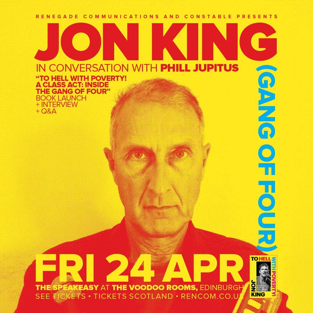 Jon King (Gang of Four) will be in conversation with Phill Jupitus in The Speakeasy at The Voodoo Rooms on Friday 24th April, to coincide with the release of the paperback edition of Jon’s book ‘To Hell With Poverty! A Class Act: Inside the Gang of Four”.