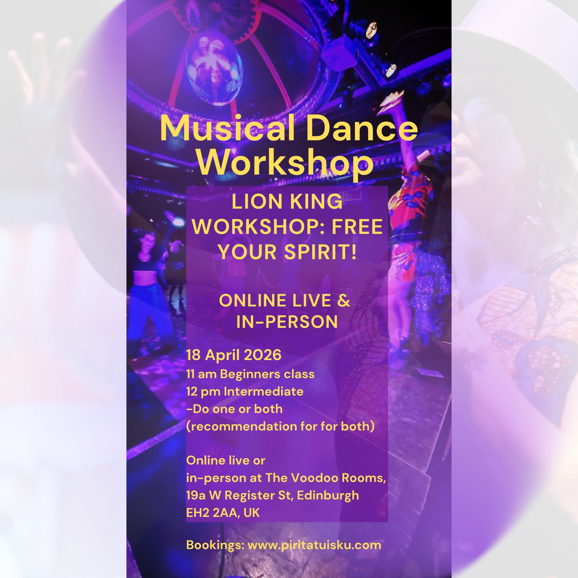 This special workshop is inspired by the spirit of The Lion King — the courage, the energy, the playfulness, and the feeling of coming back to yourself through movement. We’re not focusing on the song as a marketing idea, but on what it awakens: freedom, expression, connection, and that powerful feeling of being fully a...