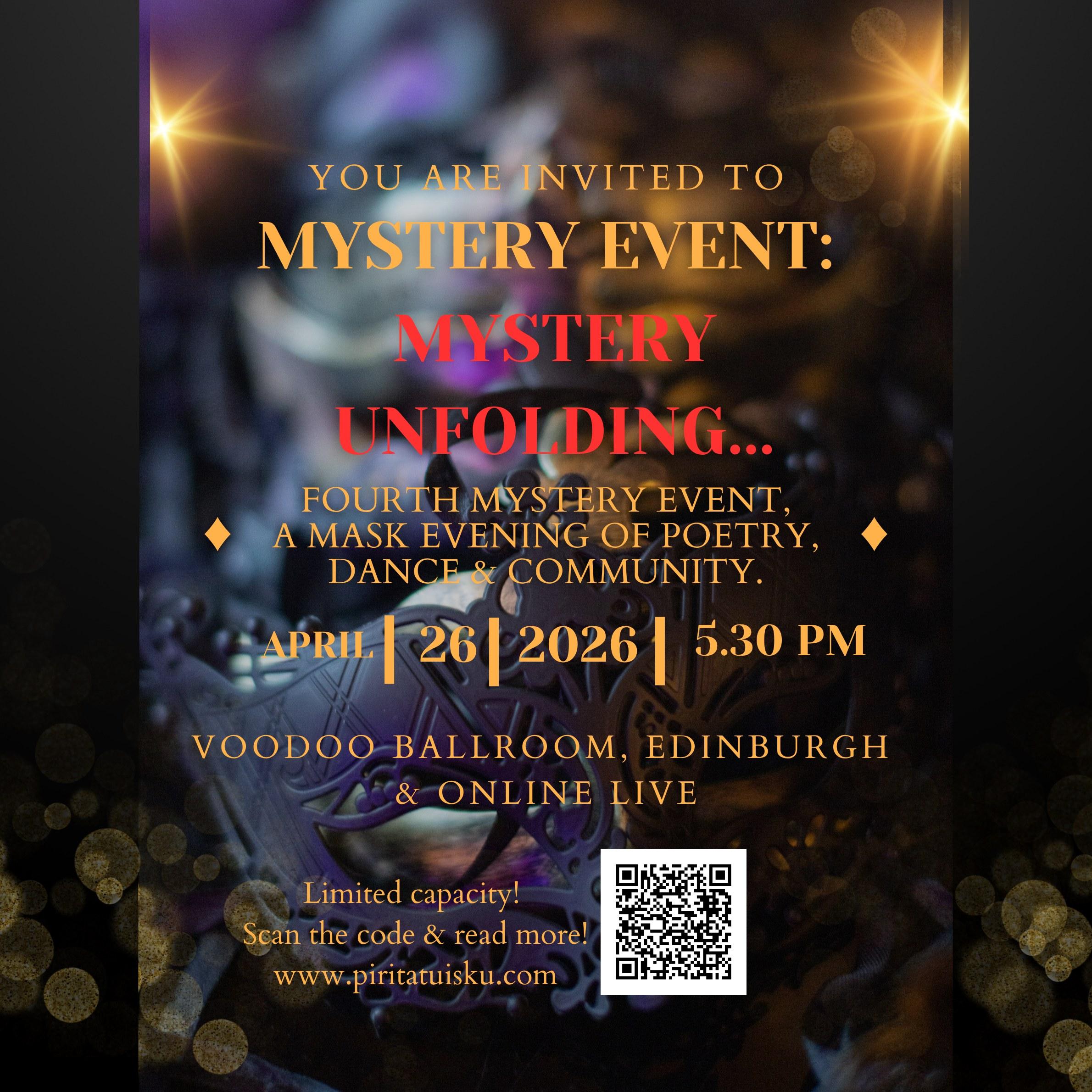 Mystery Event is our community gathering—part performance, part connection, part celebration. You’ll experience dance + poetry moments, gentle participation (if you want!), and a night that moves from “watching” into “being in it”... without revealing everything.