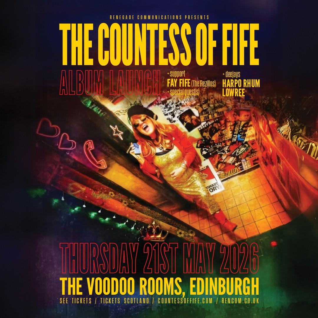Scottish punk legend Fay Fife (Rezillos) with her band The Countess of Fife returns to The Voodoo Rooms for an album launch of her new album "New Phone, New Car, New Man", which will be released on 1st May.
