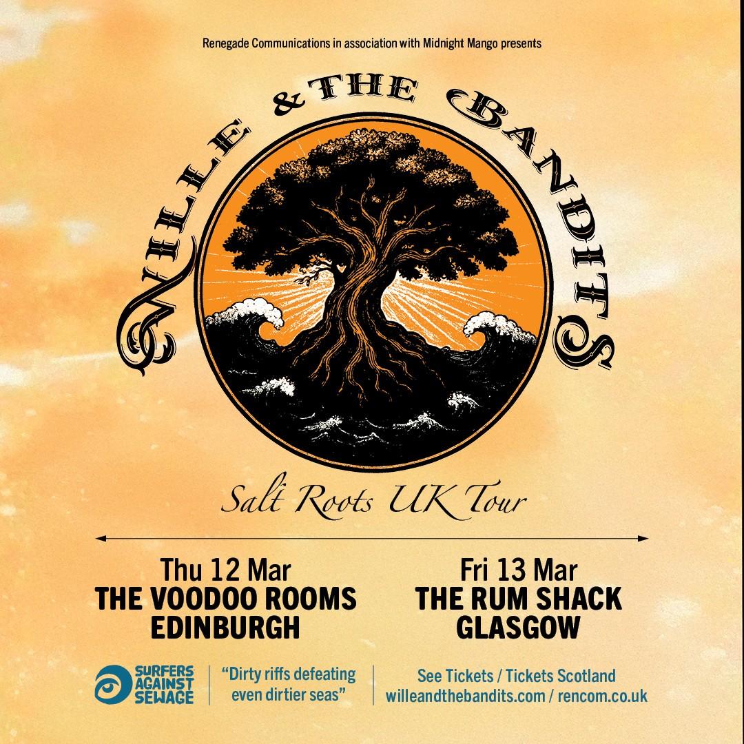 Wille & the Bandits are on the road with their brand-new album, Salt Roots. The internationally touring Cornish roots-rock act deliver crunchy riffs, soulful slide guitar, electrifying live performances and a frontman with a vocal delivery compared to Chris Cornell. The Salt Roots Tour,is in partnership with Surfers Against Sewage,which pairs unforgettable music with a mission to use Dirty Riffs to defeat evening dirtier seas.